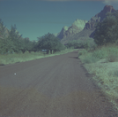 Road leading to East entrance fee station. ; ZION Museum and Archives Image 002.12.04-25of38 ; ZION 15933