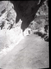 West Rim Trail in 'half tunnel' section after reconstruction and paving, section just below mouth of Refrigerator Canyon. ; ZION Museum and Archives Image 008_01_034 ; ZION 10201