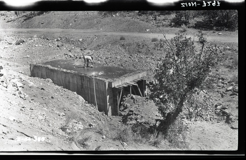Bridge pier across Oak Creek. ; ZION Museum and Archives Image 002_01024 ; ZION 7562