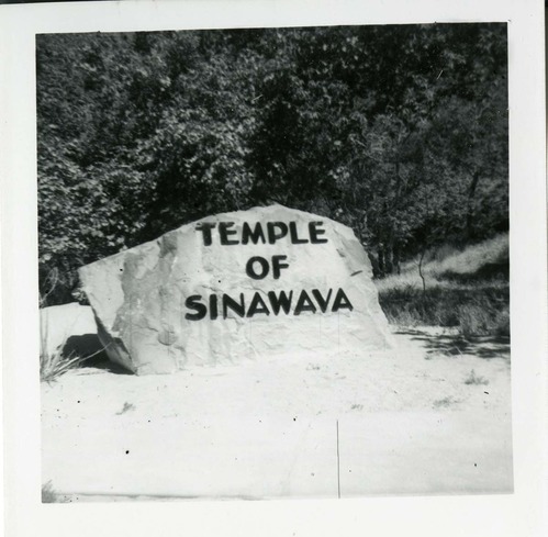 The Temple of Sinawava sign. ; ZION Museum and Archives Image 007.01.03-3of4 ; ZION 15933