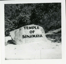 The Temple of Sinawava sign. ; ZION Museum and Archives Image 007.01.03-4of4 ; ZION 15933