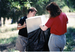 NPS employee picking up litter in campground area. ; ZION Museum and Archives Image 006.06.02-9of11 ; ZION 15933