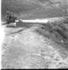 BW photos of rock slides in Kolob Canyons - 2x2. Ranger with camera reaching into crack in the road. ; ZION Museum and Archives Image 107_06_23012 ; ZION 15933