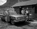 Ernest and Stella Gisseman of Midvale, Utah, pose next to their vehicle at the park entrance station. The Gissemans are the Millionth Visitor to Zion National Park. ; ZION Museum and Archives Image 9542 ; ZION 9542