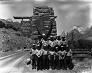 Personnel, Maintenance Crew at utility area; left to right: Raymond Gifford, Wesley Dennett, Emil 'Kelly' Justet, Donald DeMille, Bob Yager, Norm Crawford, Walter Hosey, Earl Mansor. ; ZION Museum and Archives Image ZION 9152 ; ZION 9152
