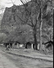 Cottonwood trees at Zion Lodge before pruning. ; ZION Museum and Archives Image 107_02_011 ; ZION 8415