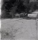 Dirt and gravel road along the scenic canyon drive near the Grotto during construction. ; ZION Museum and Archives Image 002.03.05-17of37 ; ZION 15933