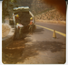 Truck along road curve along the Zion-Mt. Carmel Highway switchbacks during the widening of the retaining wall. ; ZION Museum and Archives Image 002.02.03-3of4 ; ZION 15933