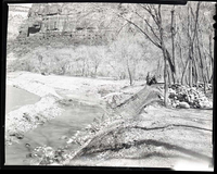 BW photos of the Virgin River Channelization Project near the Zion Lodge. ; ZION Museum and Archives Image 105_02_03002 ; ZION 15933