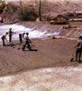 Color photo of the Virgin River channel stabilization rip-rap and construction of the spillway near Birch Creek. ; ZION Museum and Archives Image 105_02_08008 ; ZION 15933