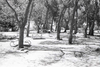 Tree-lined dirt road in the South Campground. ; ZION Museum and Archives Image 003.01.03-4of21 ; ZION 15933