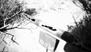 Dog stretching on edge of sewer system disposal field (leach field) and old overflowing distribution box at Pipe Spring National Monument. New sewer system installed October 1964. ; ZION Museum and Archives Image 8125 ; ZION 8125