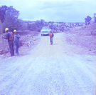 Man standing in trench off side of road while other men construct and repair roads. ; ZION Museum and Archives Image 002.12.03-7of12 ; ZION 15933