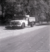 Truck dumping gravel for road construction near the Temple of Sinawava. ; ZION Museum and Archives Image 002.03.07-12of13 ; ZION 15933