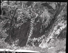 Damage done by storm of July 25, 1954 to West Rim Trail. Looking down on trail just below Walter's Wiggles. ; ZION Museum and Archives Image 008_01_020 ; ZION 10329