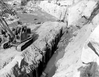 Of river bank protection, Virgin River, with equipment (front end loader and dredge). ; ZION Museum and Archives Image ZION 8536 ; ZION 8536