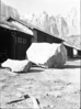 Rock fall behind Chief Ranger Fred Brueck's residence. [scratches, fingerprints] ; ZION Museum and Archives Image Zion 8570 107.06 Neg4413 ; ZION 15933