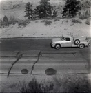 Wooden post in road crack during east side road repair and turn out construction. ; ZION Museum and Archives Image 002.13.01-51of53 ; ZION 15933