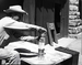 BW Photos of maintenance equipment. Lunch pails in rack on picnic table. Sign in background reads: Horses for Rent. ; ZION Museum and Archives Image 700_04_12002 ; ZION 15933
