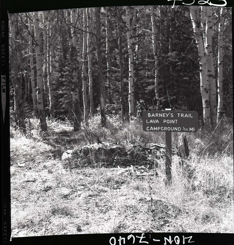 Sign on West Rim Trail with mileage to Lava Point Campground. ; ZION Museum and Archives Image 008_01_053 ; ZION 7640