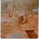 Workers uncovering the irrigation ditch in South Campground. ; ZION Museum and Archives Image 003.02.01-7of12 ; ZION 15933