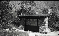 Wayside exhibit shelter, Temple of Sinawava. ; ZION Museum and Archives Image 007_01_055 ; ZION 13406