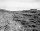 A portion of the roadside junk lining State Route 15 (now state Route 9) at the 101 Ranch service station. Rocket sleds from United States Air Force (USAF) Hurricane Supersonic Research Site on Hurricane Mesa, surplus materials from the Coleman Engineering
