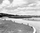Crowd watching as Arizona Governor Jack Williams and 'Miss Fredonia' cut the ribbon at the dedication ceremony of Arizona State Highway 389, Fredonia, Arizona, August 5, 1967. ; ZION Museum and Archives Image 14710 ; ZION 14710