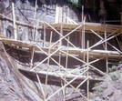 The Temple of Sinawava spring project - scaffolding construction and use. ; ZION Museum and Archives Image 006.04.08-28of51 ; ZION 15933