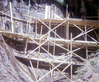 The Temple of Sinawava spring project - scaffolding construction and use. ; ZION Museum and Archives Image 006.04.08-30of51 ; ZION 15933
