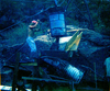 Worker setting up the tramline for the transportation of equipment for the construction of Wiley Tank. ; ZION Museum and Archives Image 005.09.12-7of27 ; ZION 15933