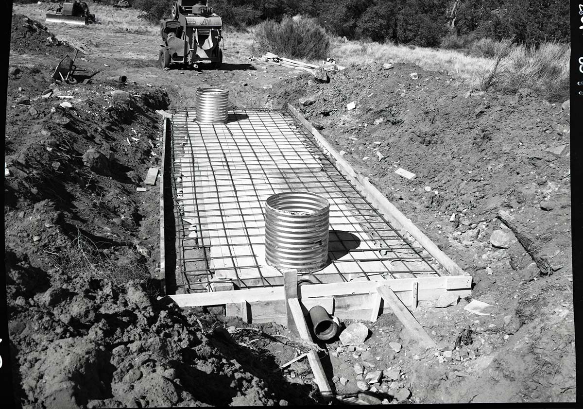 Water supply - Temple of Sinawava construction of concrete underpass for water pipe. ; ZION Museum and Archives Image 006_04_132 ; ZION 8019