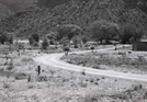 Trailers driving into Watchman Campground. ; ZION Museum and Archives Image 003.01.01-3of22 ; ZION 15933