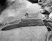 Dinosaur tracks in slabs of Kayenta formation on left hand fork of North Creek, section 23, T 40 S, R 11 W. ; ZION Museum and Archives Image ZION 8950 ; ZION 8950