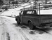 Snowplow accident, county line curve along East Entrance road showing vehicle that slid into snow plow and skid marks. ; ZION Museum and Archives Image 107_05_044 ; ZION 8497