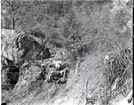Bulldozer widening catchment area at top of pipeline - Springdale water system. Two men seated on hillside watching. ; ZION Museum and Archives Image 006_04_012 ; ZION 8211