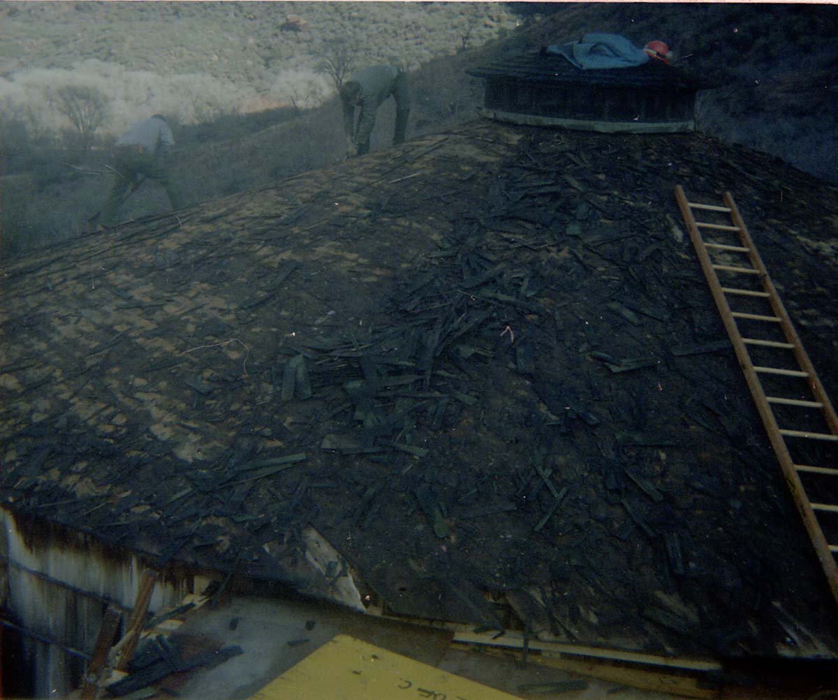 One of three water tanks involved in reroofing project. ; ZION Museum and Archives Image 005.09.03-12of15 ; ZION 15933