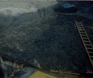 Pile of old shingles removed from water tank during reroofing project, old road sign used as part of scaffolding. ; ZION Museum and Archives Image 005.09.03-6of15 ; ZION 15933