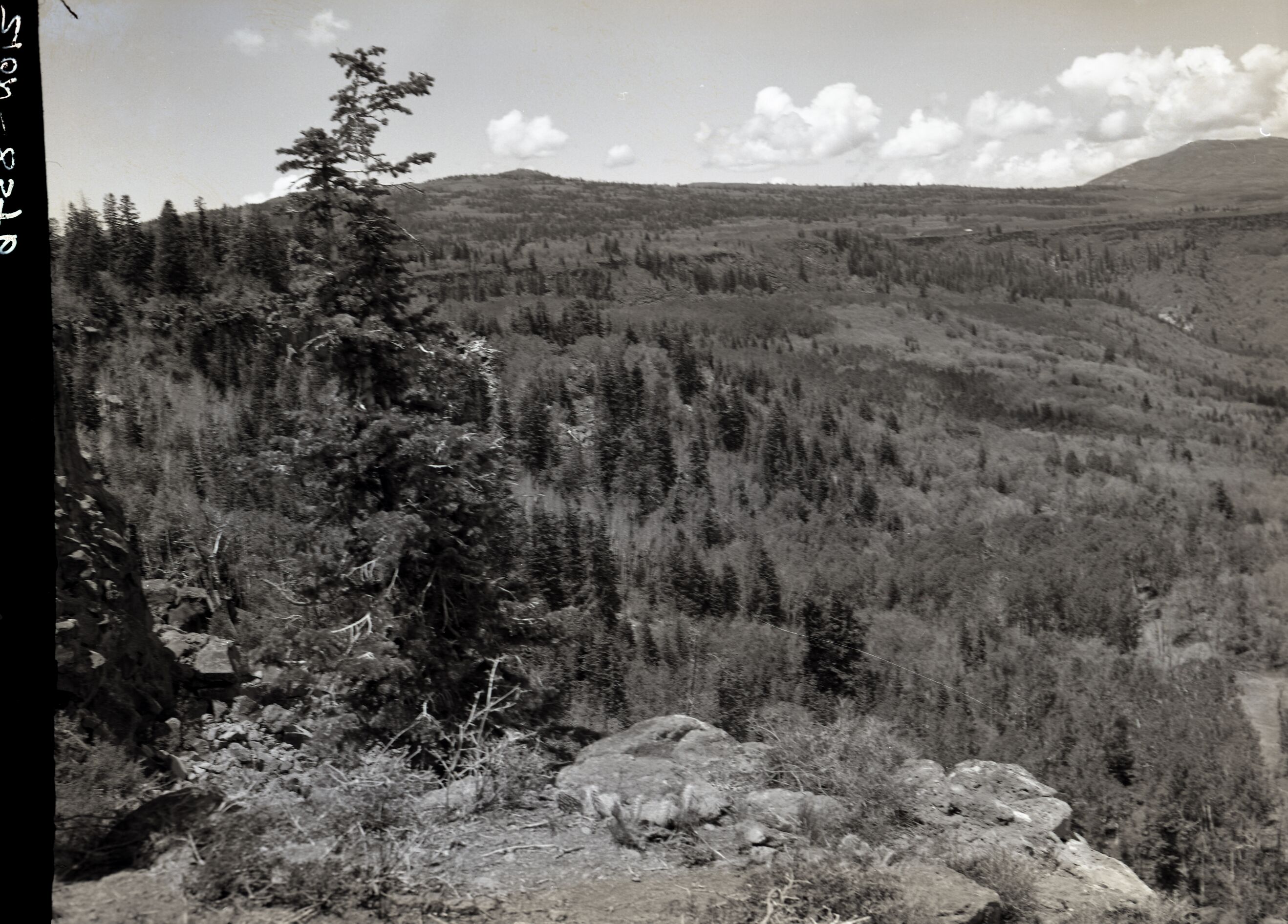 Inspection trip into Kolob area of Langston Canyon where Evan Lee proposed building road to top of the mountain to remove timber. ; ZION Museum and Archives Image 103_04_001 ; ZION 13437