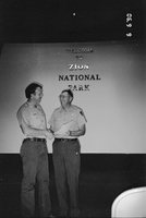 BW Photos of Superintendent Harold Grafe giving out awards to park personnel. ; ZION Museum and Archives Image 800_15_02007 ; ZION 15933
