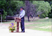 Color Photos of the opening celebration for the new visitor center - Same day as the official shuttle launch. Superintendent Donald A. Falvey speaking with visitor. ; ZION Museum and Archives Image 800_20_02035 ; ZION 15933