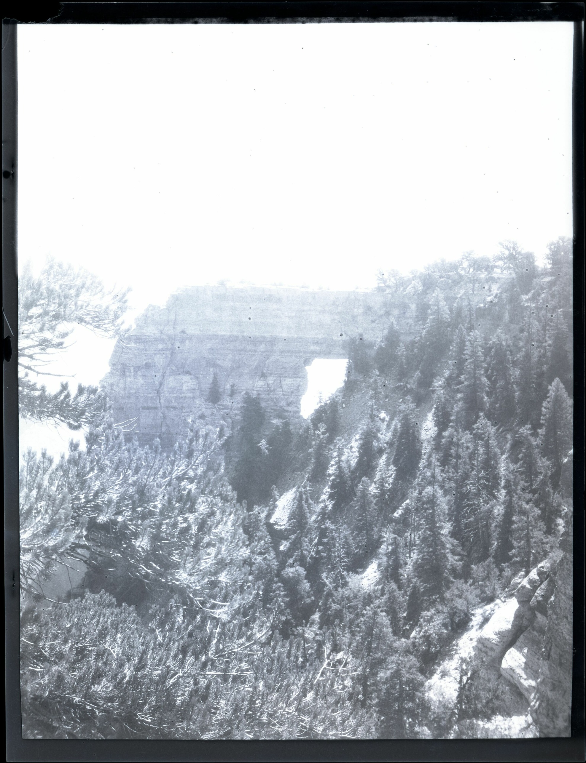 Nitrate negative of Natural Bridge from below the rim in BRCA. ; BRCA Museum and Archives Image BRCA8875_001_360 ; BRCA 8875