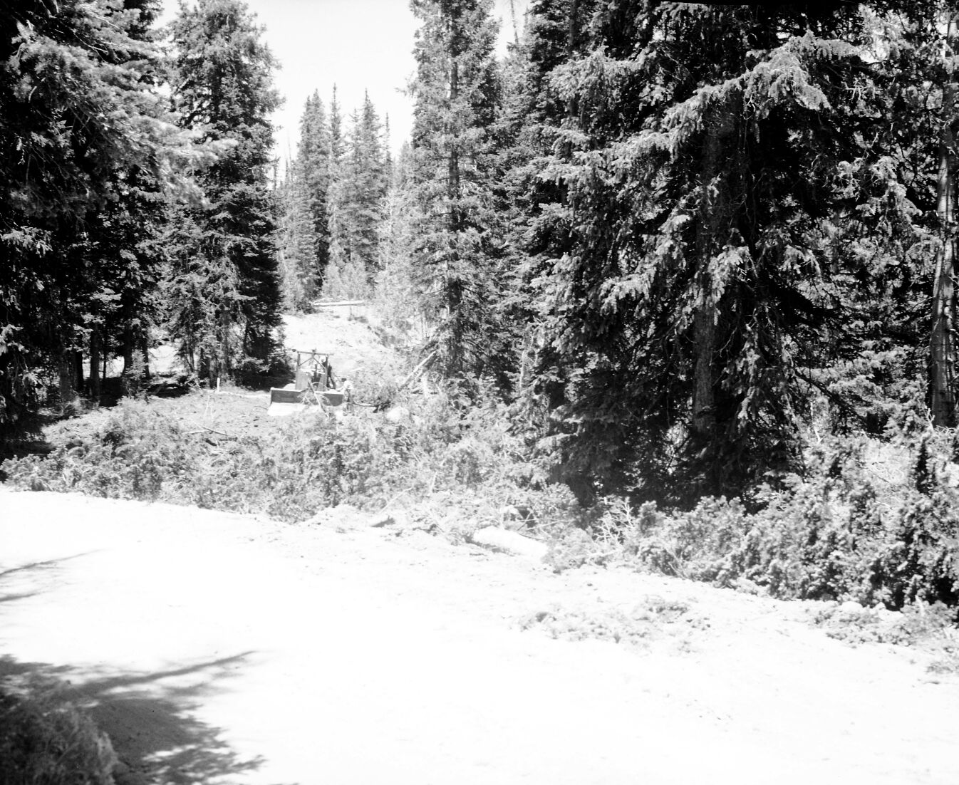 Gravel pit area with conveyor equipment during the rim road surfacing project at Cedar Breaks National Monument. ; ZION Museum and Archives Image 7502 ; ZION 7502