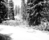 North view on the rim road at Cedar Breaks National Monument, before the 1960 construction project. Taken as a record of the project. ; ZION Museum and Archives Image 7483 ; ZION 7483
