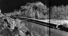 Stream bank protection along eroded stream bank, near old Wiley camp. Logs wired to cables, willow cuttings scattered along logs. ; ZION Museum and Archives Image ZION 9353 ; ZION 9353
