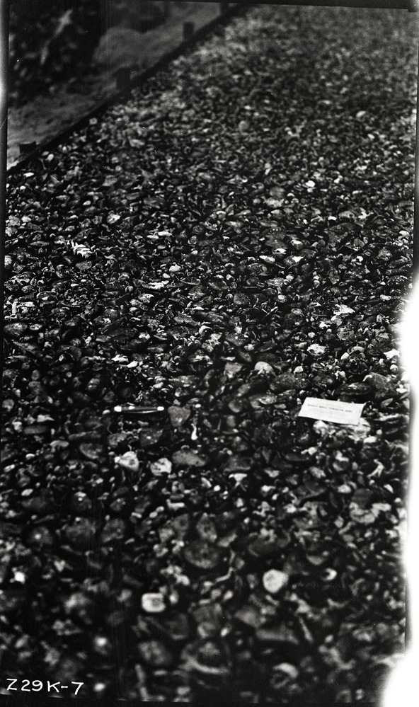 Narrows Trail construction, station 7-00, looking north, with base course of gravel ready for 1/4 to 1/2 inch screenings. ; ZION Museum and Archives Image 008_03_019 ; ZION 13597
