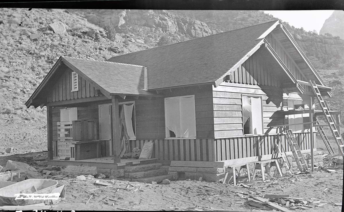 Construction, residence Building 8, near completion, Oak Creek. ; ZION Museum and Archives Image 004_03A055 ; ZION 7392