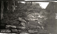 Damage done by storm of July 25, 1954 to West Rim Trail. ; ZION Museum and Archives Image 008_01_015 ; ZION 10324