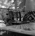 Vilo DeMille and daughter working on quilt at second annual Folklife Festival, Zion National Park Nature Center, September 1978. [No photo or positive. Fingerprints and smudges on the negative.] ; ZION Museum and Archives Image ZION 9296 ; ZION 9296