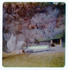 Cloud of dust from the destruction of the lodge pool and bathhouse. ; ZION Museum and Archives Image 004.08.03-5of21 ; ZION 15933